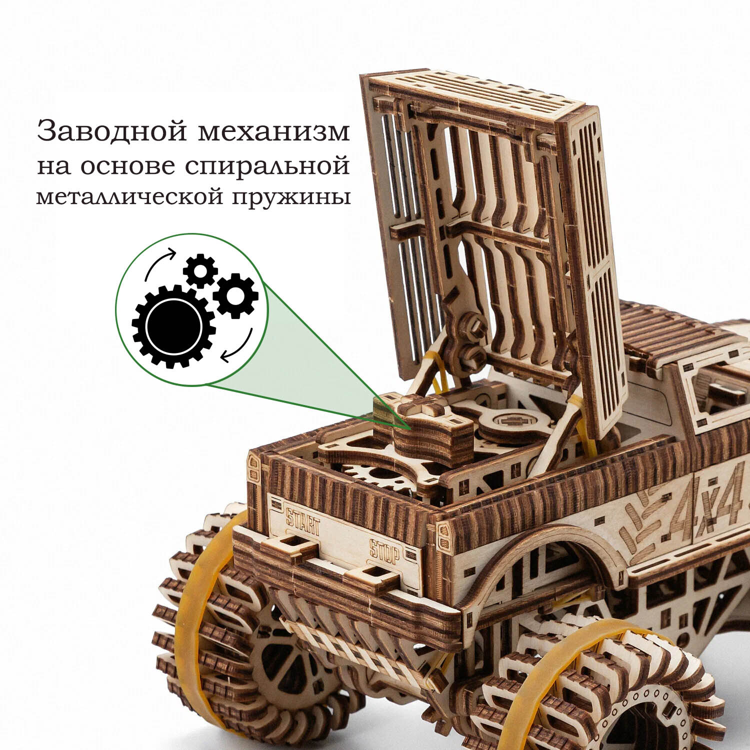 Сборная деревянная Джип БигФут 4x4 с пружинным мотором от DROVO