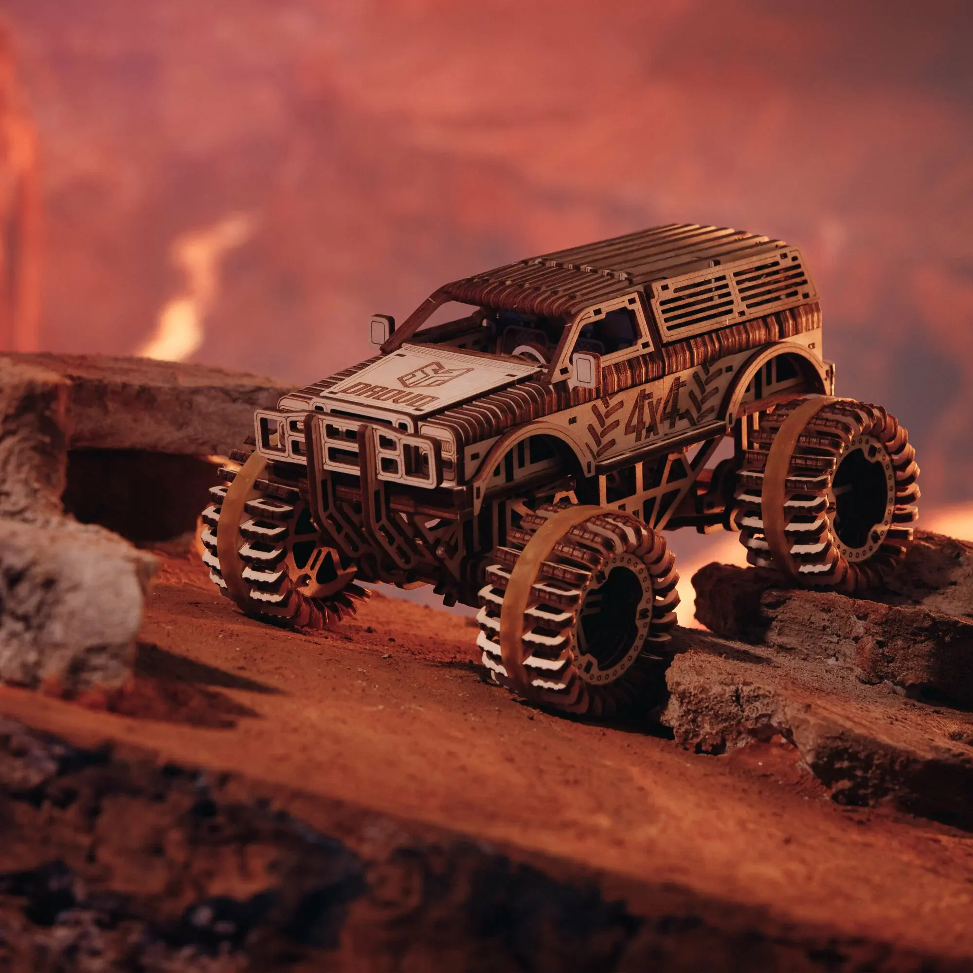 Деревянный механический конструктор модель Джип БигФут 4x4 (DROVO)