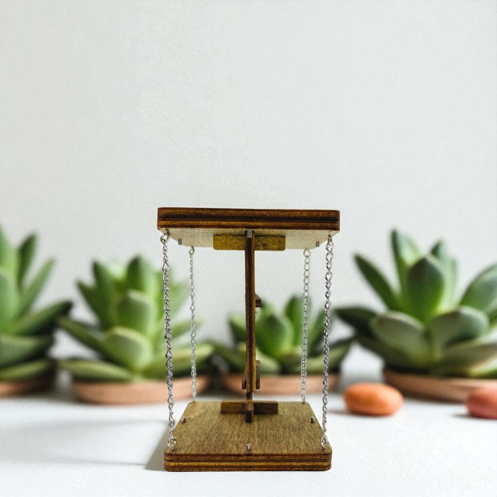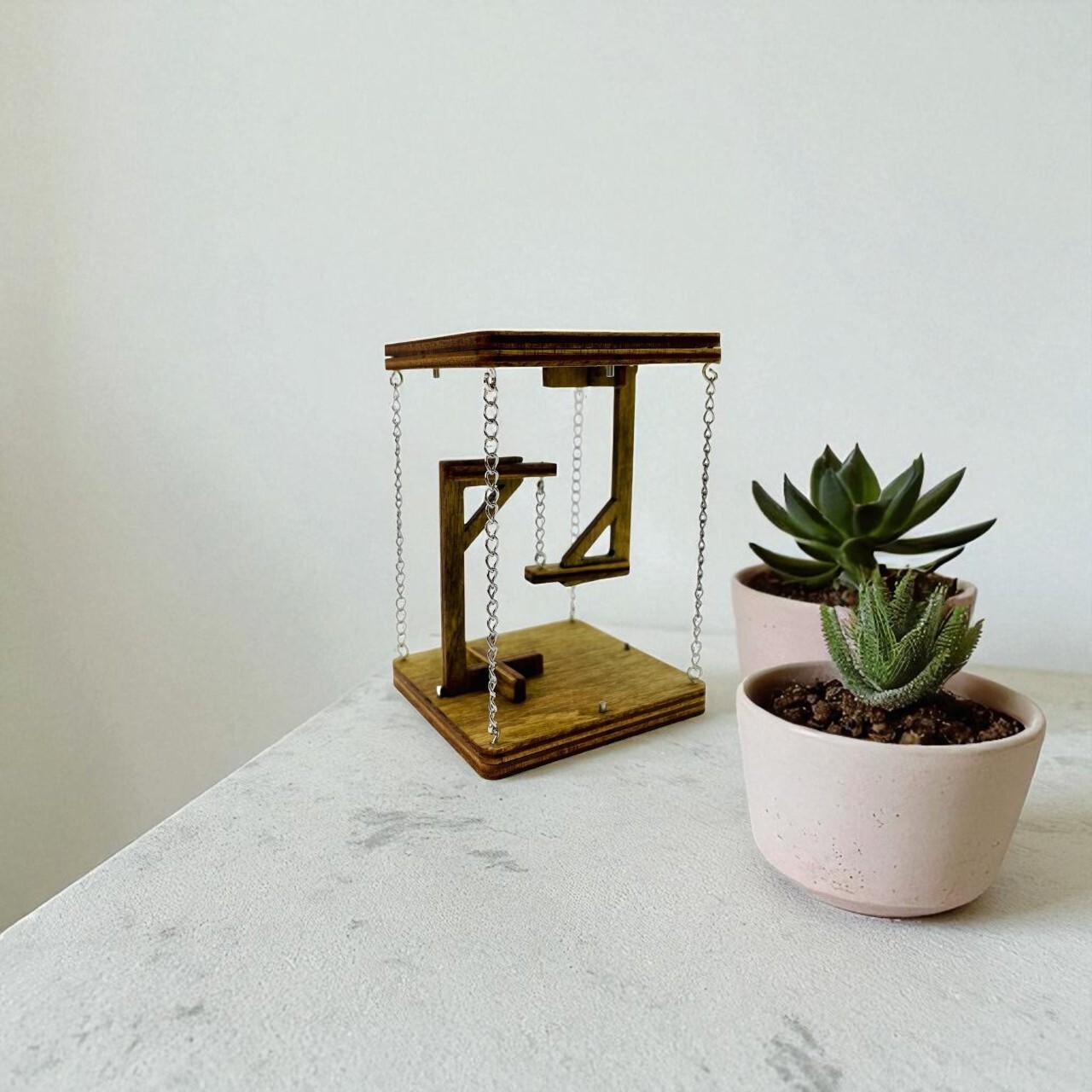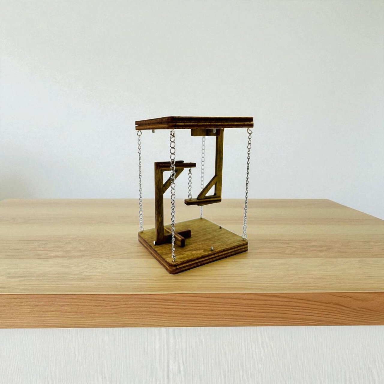 Модель выполнена из деревянных деталей и стальных цепочек, что придает модели изящный вид и необходимую прочность конструкции.