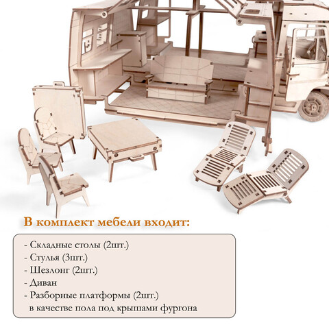 Деревянный конструктор Кукольный дом на колесах - Трейлер-дом "Пикник" (Lemmo)