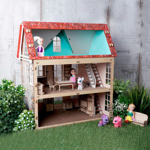 Деревянный кукольный домик с лифтом раздвижной (EWA)