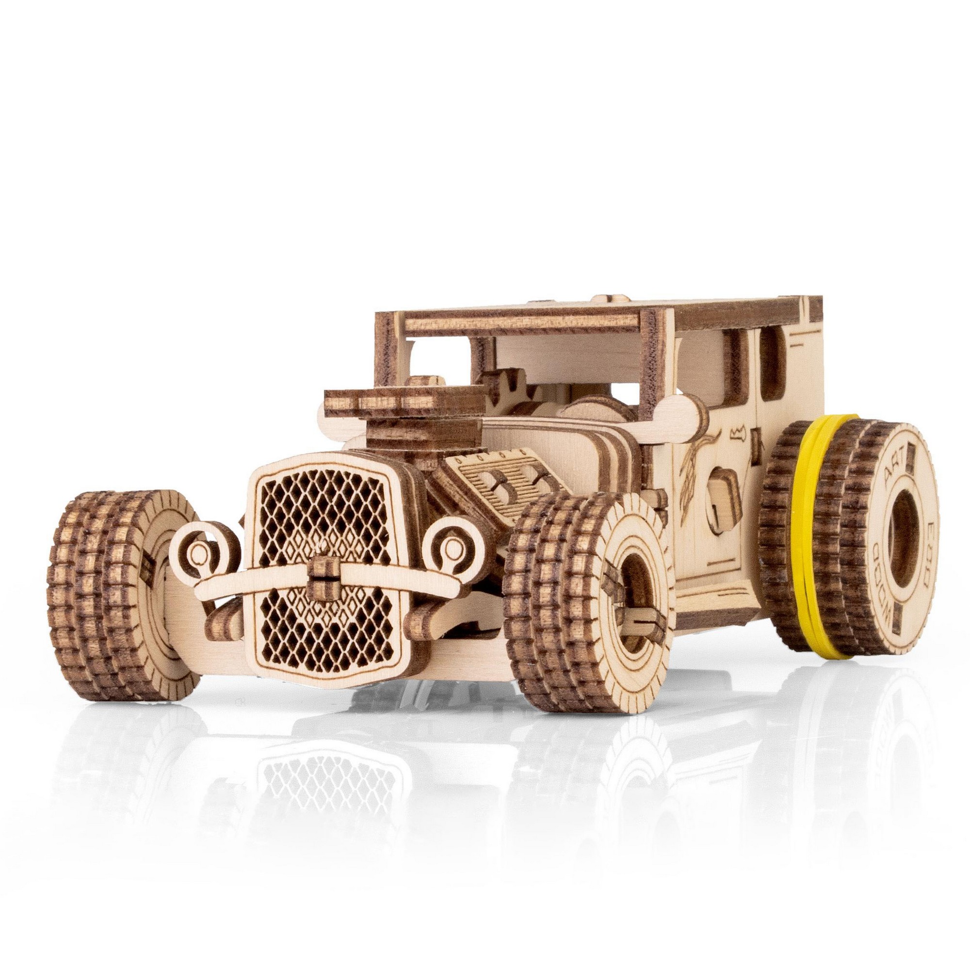 Сборная механическая деревянная модель Автомобиль ХОТ-РОД от EWA