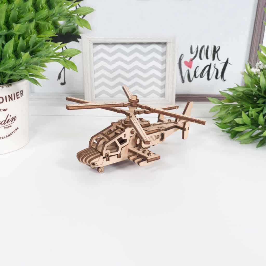 Сборная деревянная модель маленького боевого вертолёт "Акула" от Lemmo