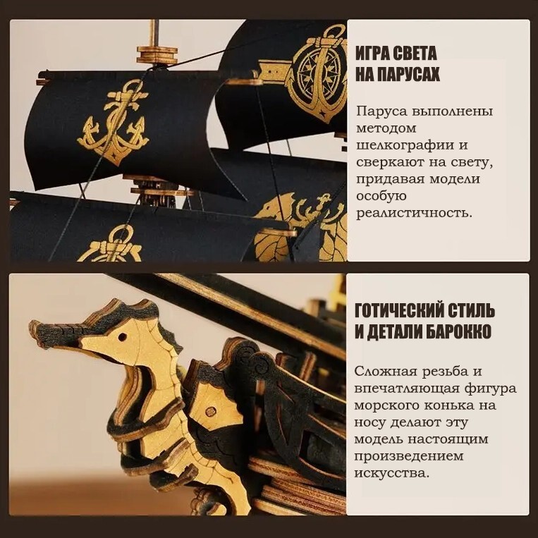 Детали плотно соединяются друг с другом обеспечивая прочность и стабильность конструкции. Лазерная резка гарантирует точность каждой детали. - Атмосфера старины и морских легенд