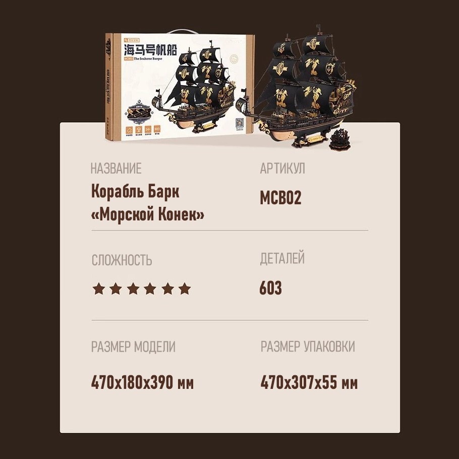 Хочешь собрать легенду — собери Корабль Барк «Морской Конек» (Seahorse Barque) MCB02 от ROKR. Наслаждайся процессом и открой для себя дух морских открытий прямо у себя дома!