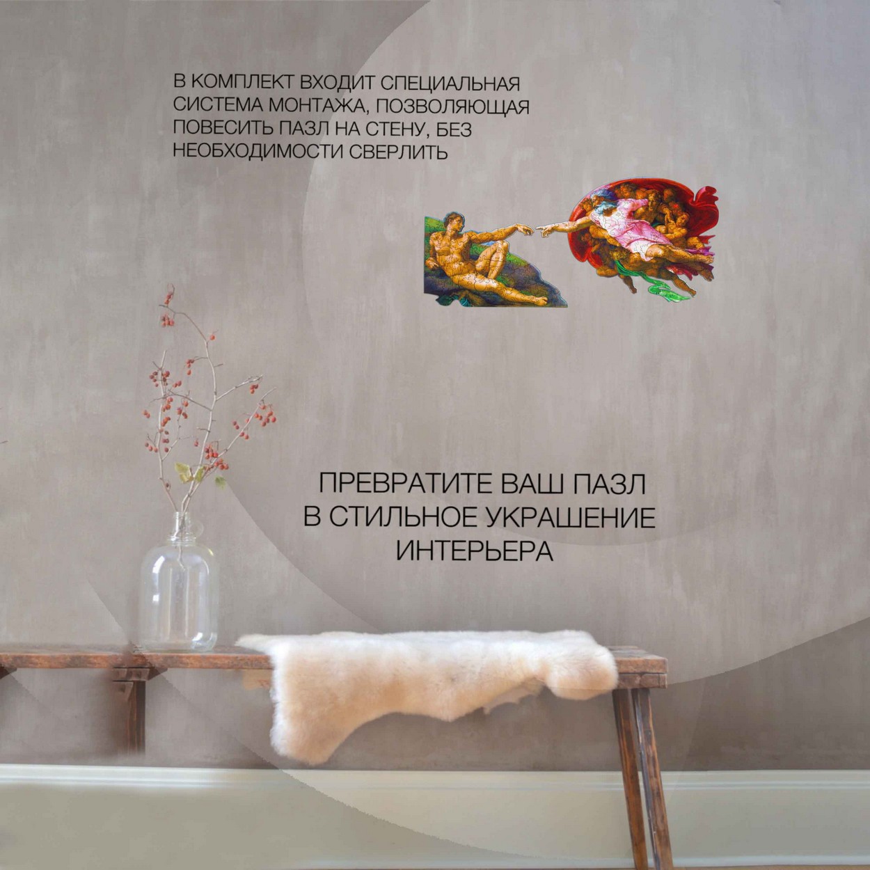Пазл выполнен по фреске Микеланджело «Сотворение Адама» от Woodzle